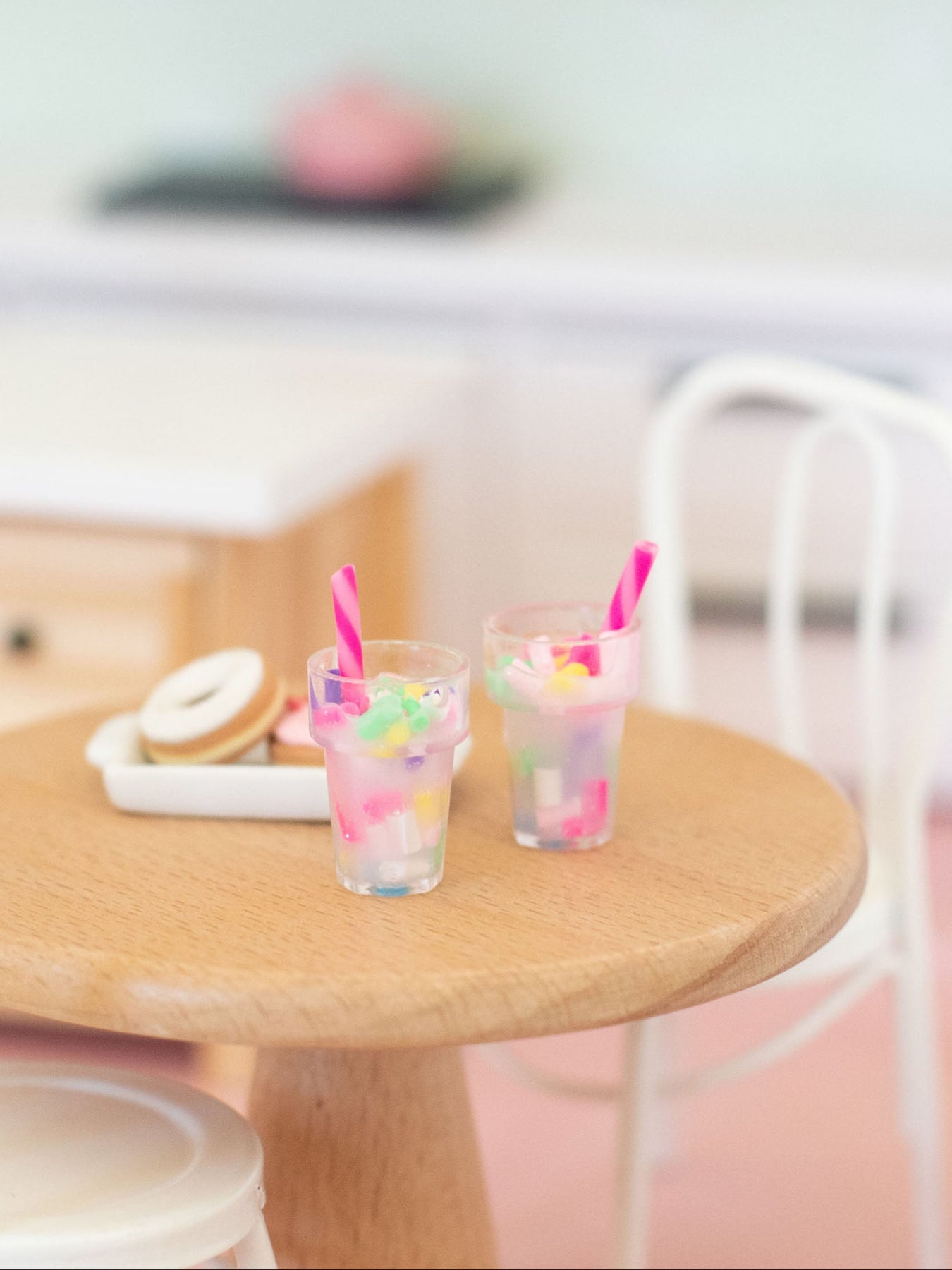 A sweet fruity treat for your miniatures! This smoothie set is an adorable addition to your tiny kitchen.